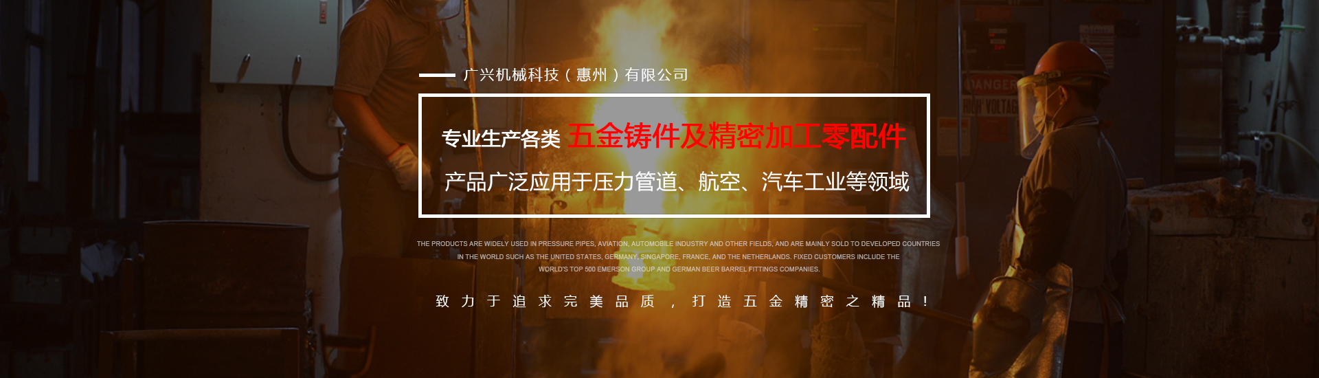 公司專(zhuān)業(yè)生產(chǎn)各類(lèi)五金鑄件及精密加工零配件,可熔煉材質(zhì)為全系列不銹鋼及碳鋼,主要生產(chǎn)材質(zhì)有304316316L17-4430409等,年生產(chǎn)各種不銹鋼鑄件1000余噸。產(chǎn)品廣泛應(yīng)用于壓力管道、航空、汽車(chē)工業(yè)等領(lǐng)域,主要銷(xiāo)往美國(guó)、德國(guó)、新加坡、法國(guó)、荷蘭等世界發(fā)達(dá)國(guó)家,固定客戶(hù)有世界500強(qiáng)艾默生集團(tuán)及德國(guó)啤酒桶配件公司。
